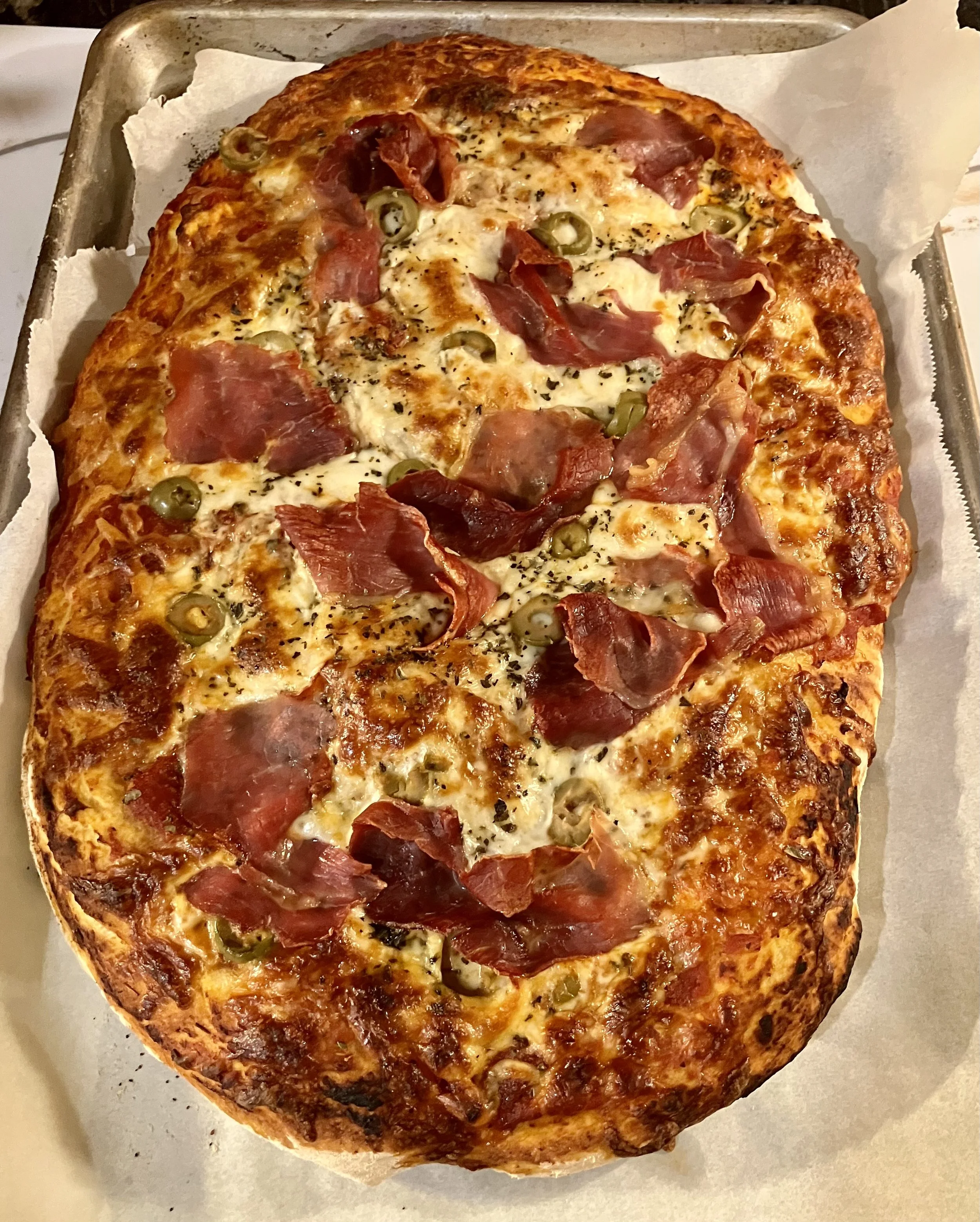 Add cheese, pepper, fresh basil to taste. Serve. This pairs well with homemade sourdough bread, salads and sandwiches.