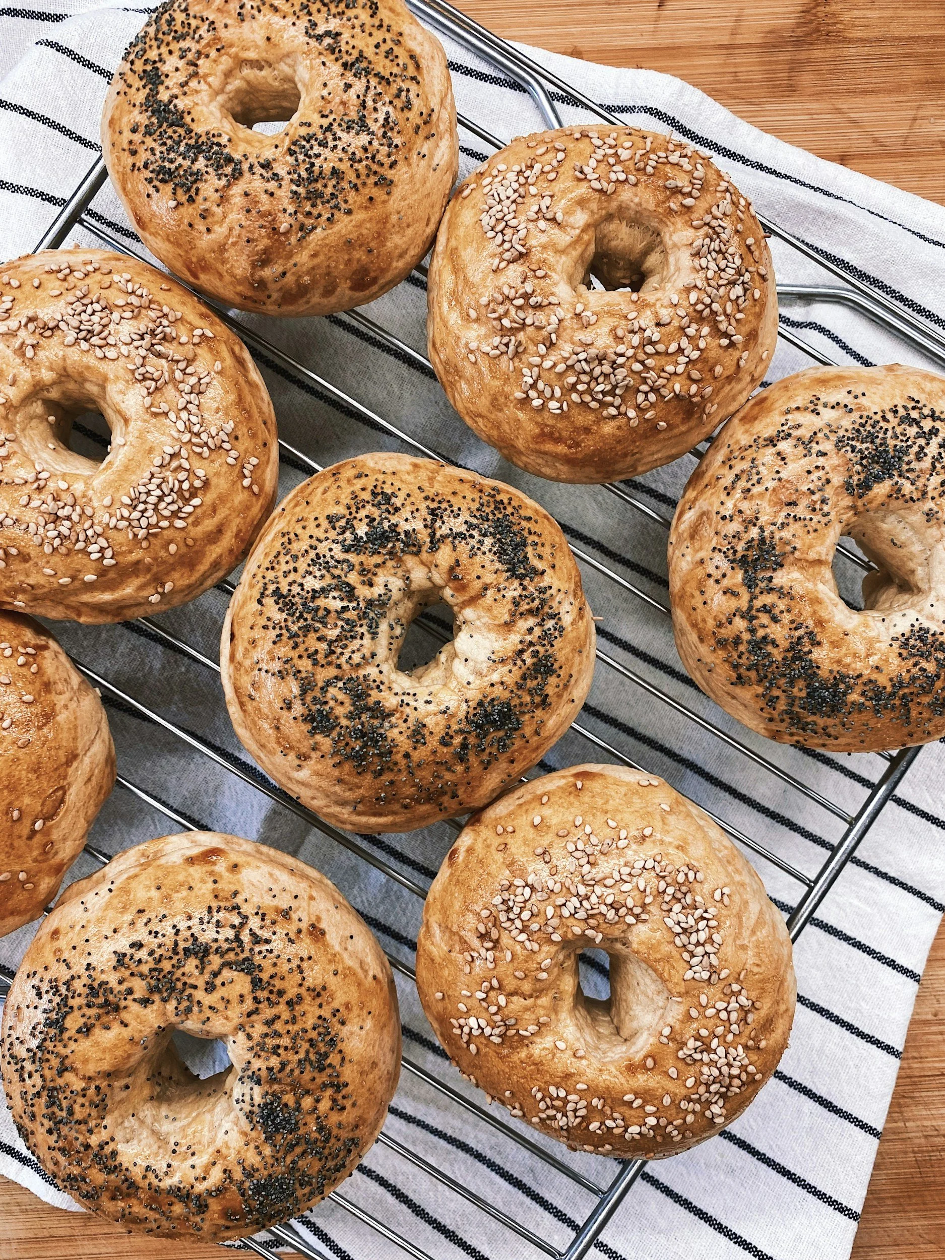 Yield: 8 bagels | Active: 30 min | Ferment: 24-48 hrs | Bake: 25 min