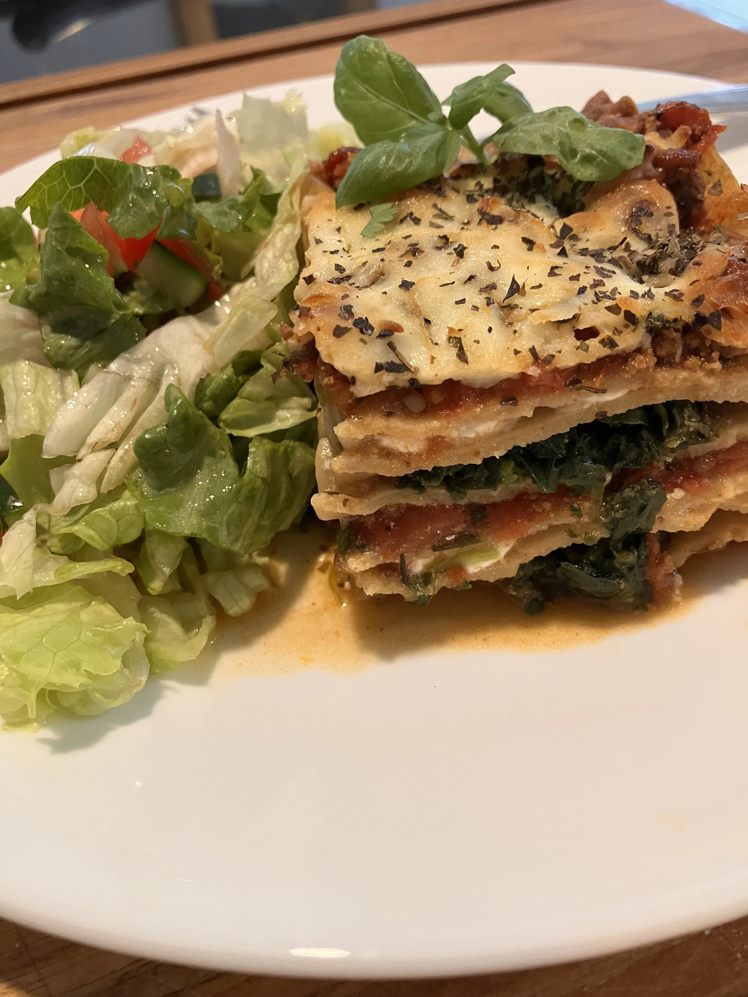 What sets Lasagne à Danielle apart is its beautiful simplicity. Instead of a heavy meat filling, this recipe leans into spinach and cottage cheese — a classic pairing that keeps things lighter without skimping on flavour or comfort. The cottage cheese melts into creamy, pillowy layers, the spinach adds colour and nutrition, and the golden mozzarella on top? Absolutely irresistible.